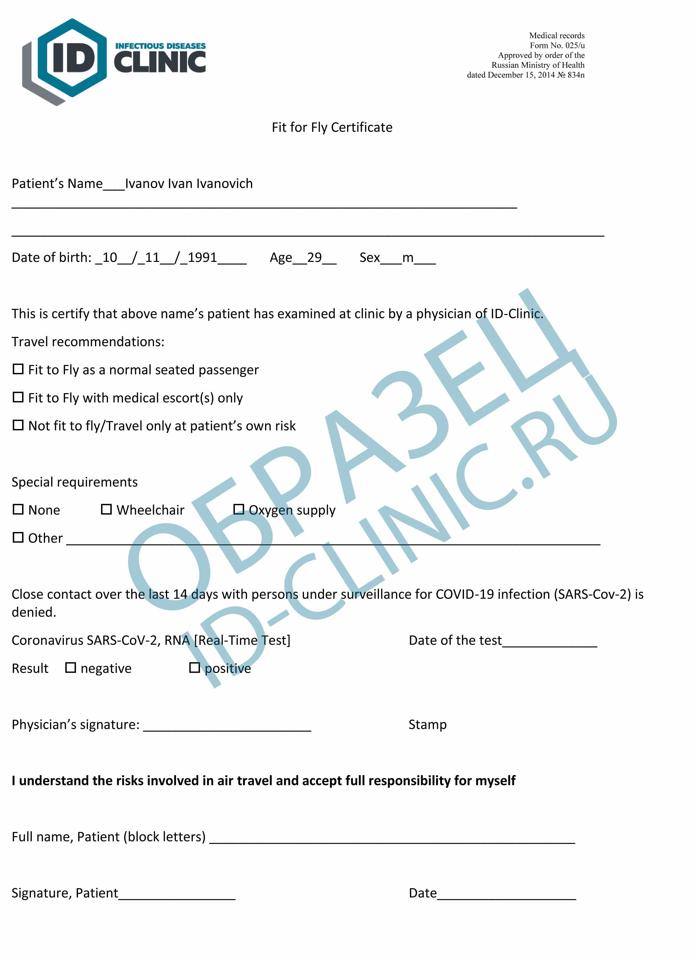 Образец сертификата Fit to Fly