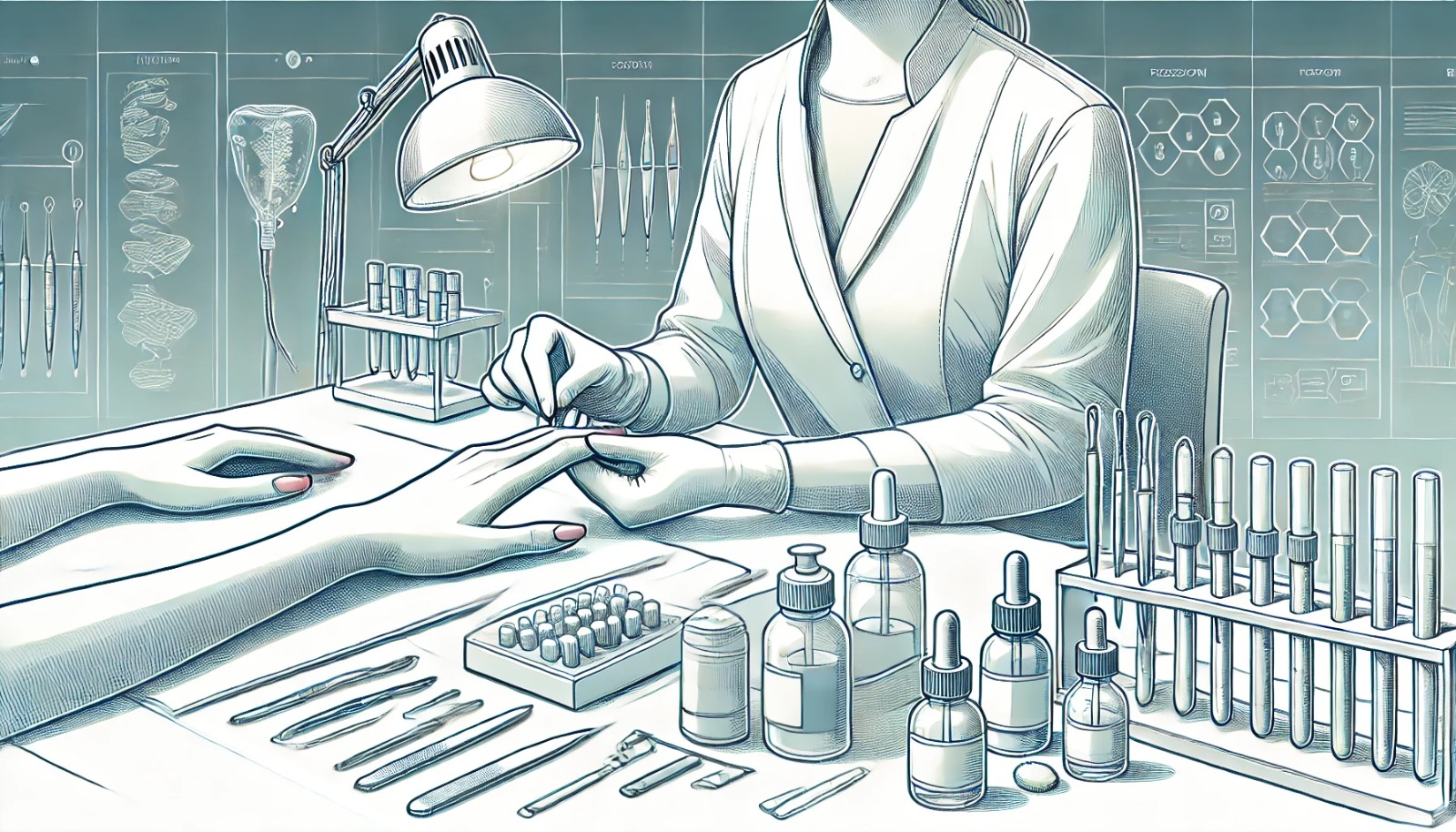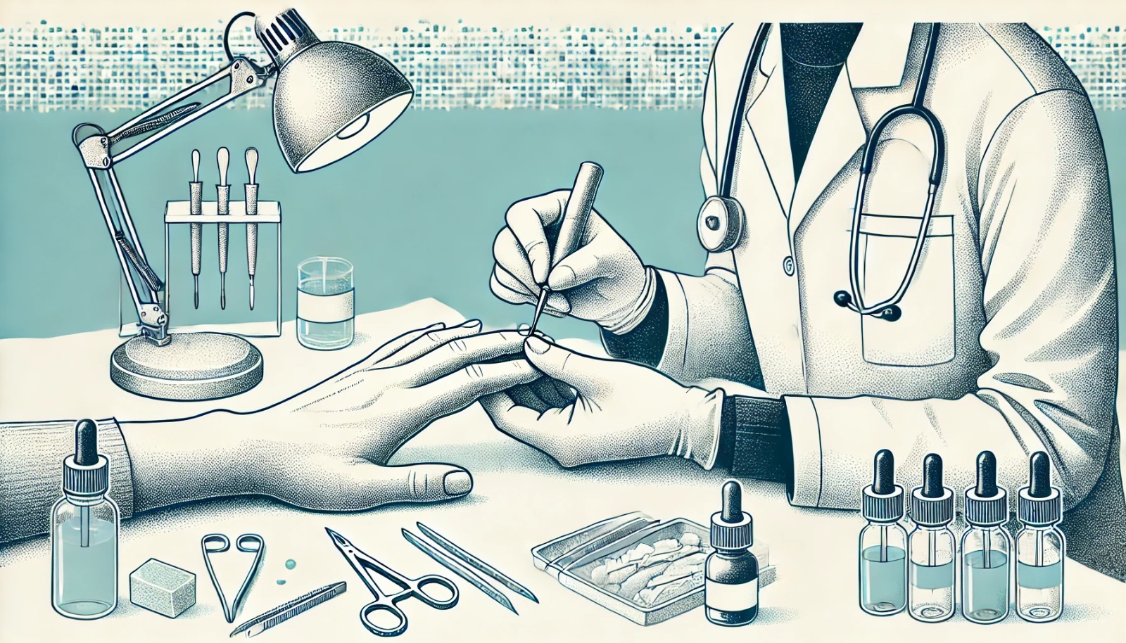 ● Тщательный осмотр и диагностика состояния кистей рук, при необходимости — выполнение осмотра под лампой вуда, взятие соскоба на грибок и проведение других анализов.