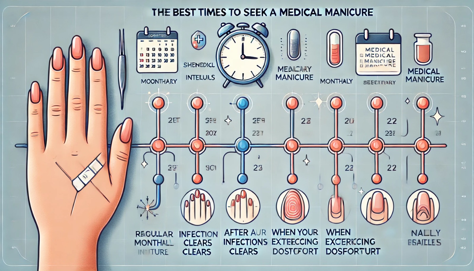 Приходить на медицинский маникюр с лечебной целью желательно 1 раз в месяц или реже в зависимости от рекомендаций врача. Особенно важно регулярно посещать врача, если у вас есть такие проблемы: