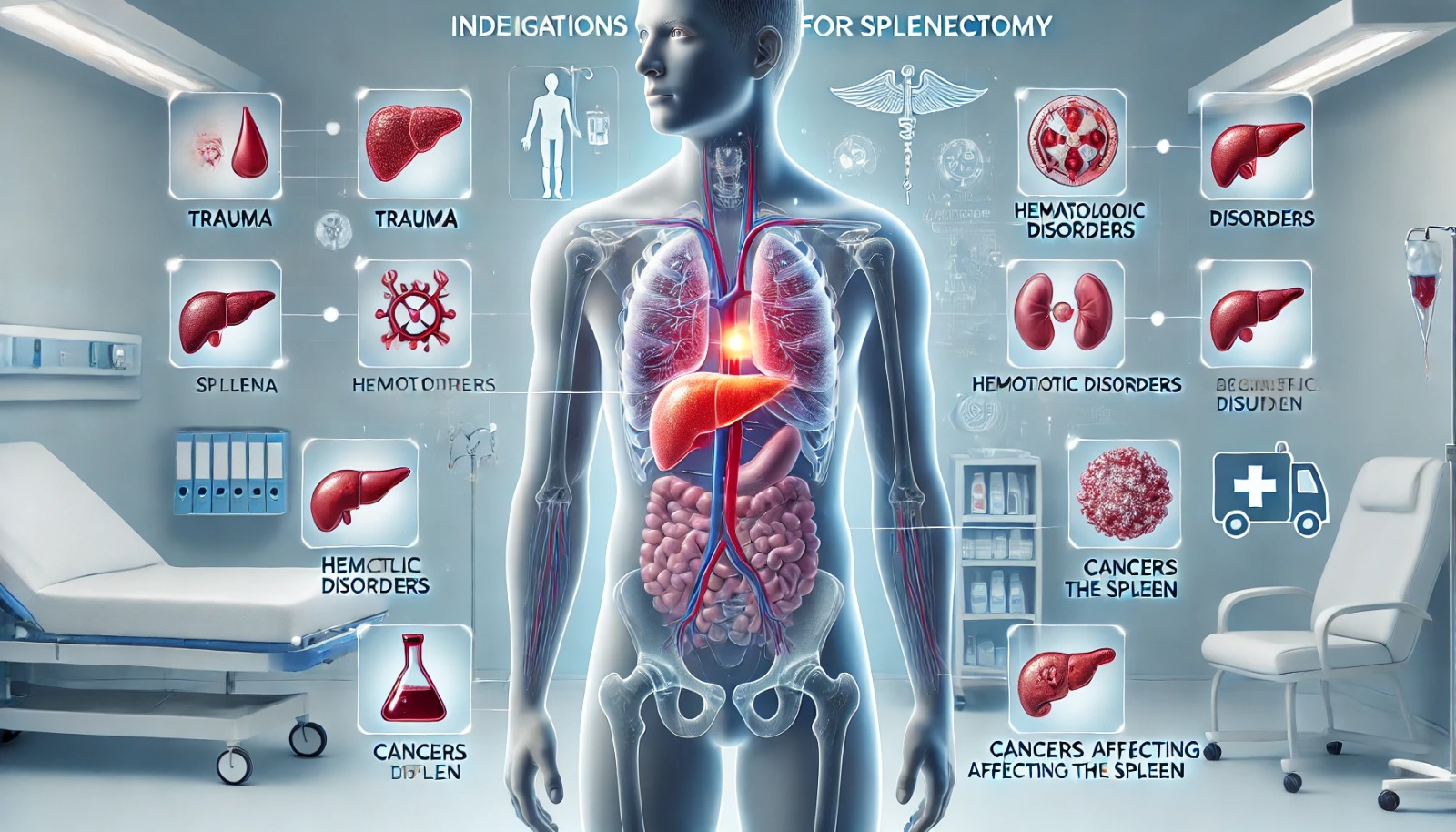 Экстренная спленэктомия проводится у пациентов с разрывом селезенки в результате открытой или закрытой травмы живота. К экстренным показаниям также относят инфаркты селезенки, крупные абсцессы, которые осложняются перитонитом.